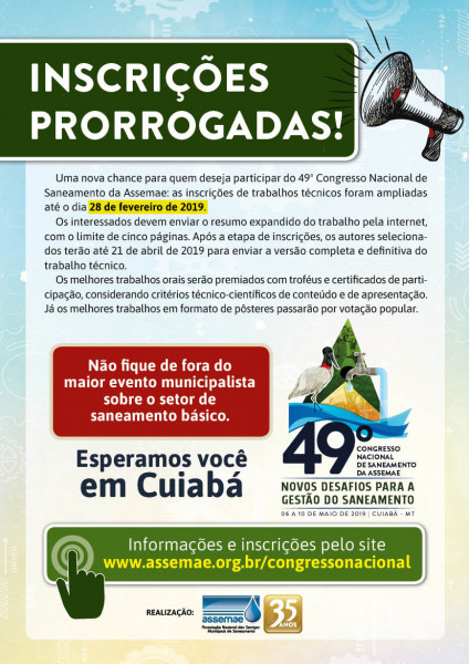 Inscrições Prorrogadas – 49º Congresso de Saneamento da Assemae